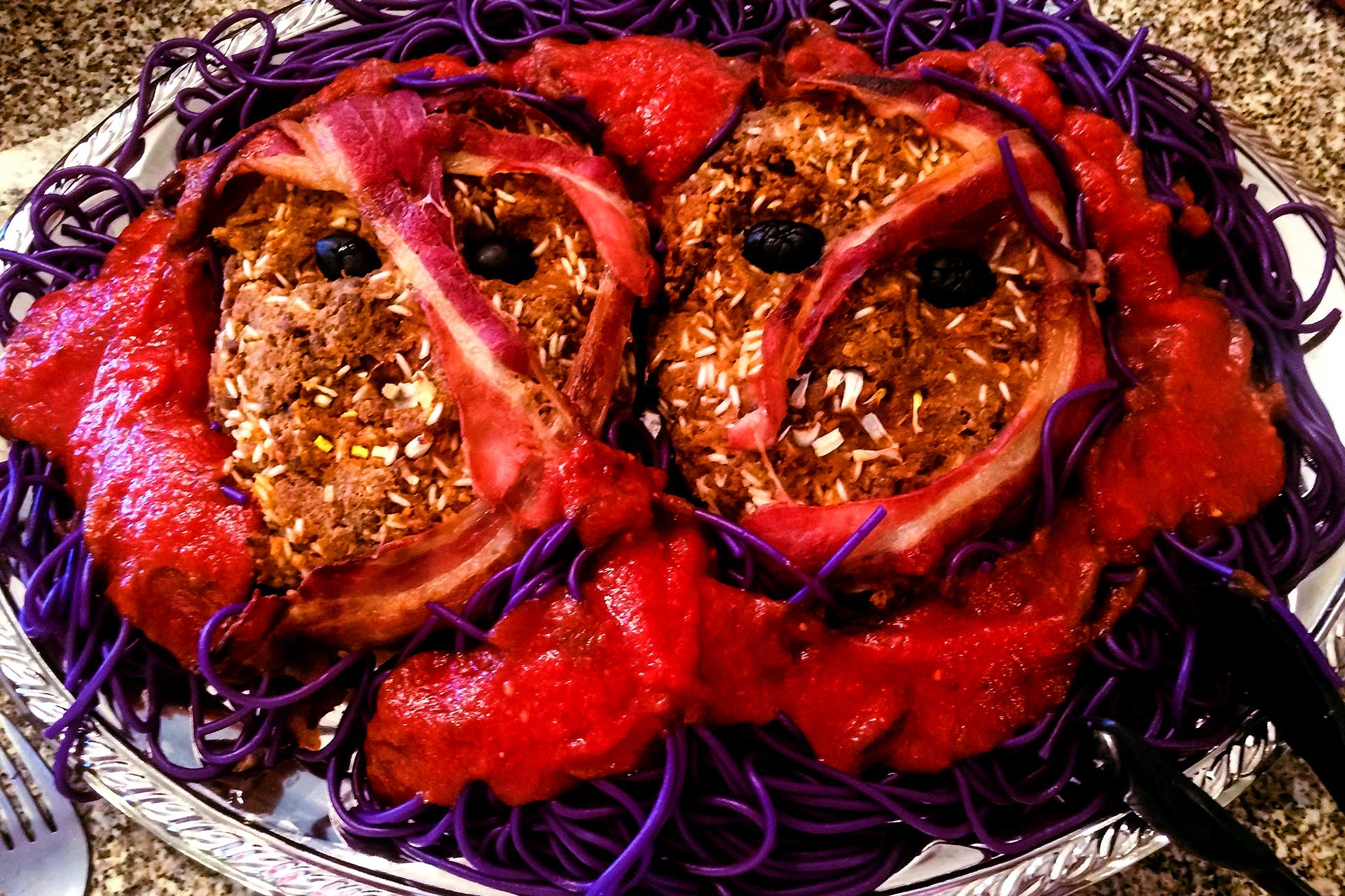 Creative presentation that turns a familiar dinner into a Halloween theme